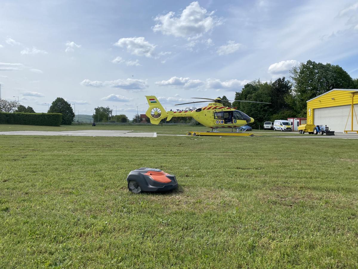 Ma egy nagyon érdekes helyen telepíthettünk: a budaörsi Légimentő Bázison. A Husqvarna Magyarországgal közösen telepítettünk és tesztelünk jelenleg egy vezeték nélküli Automower 550 EPOS professzionális robotfűnyírót a területen.
