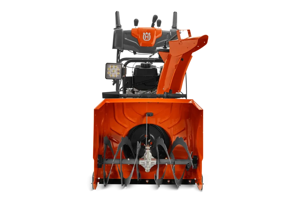 Kéttárcsás rendszer: a masszív szalag-csiga először mozgatja a havat, majd az impeller dobja el – így hatékony még nedves, tömörített hóban is.
