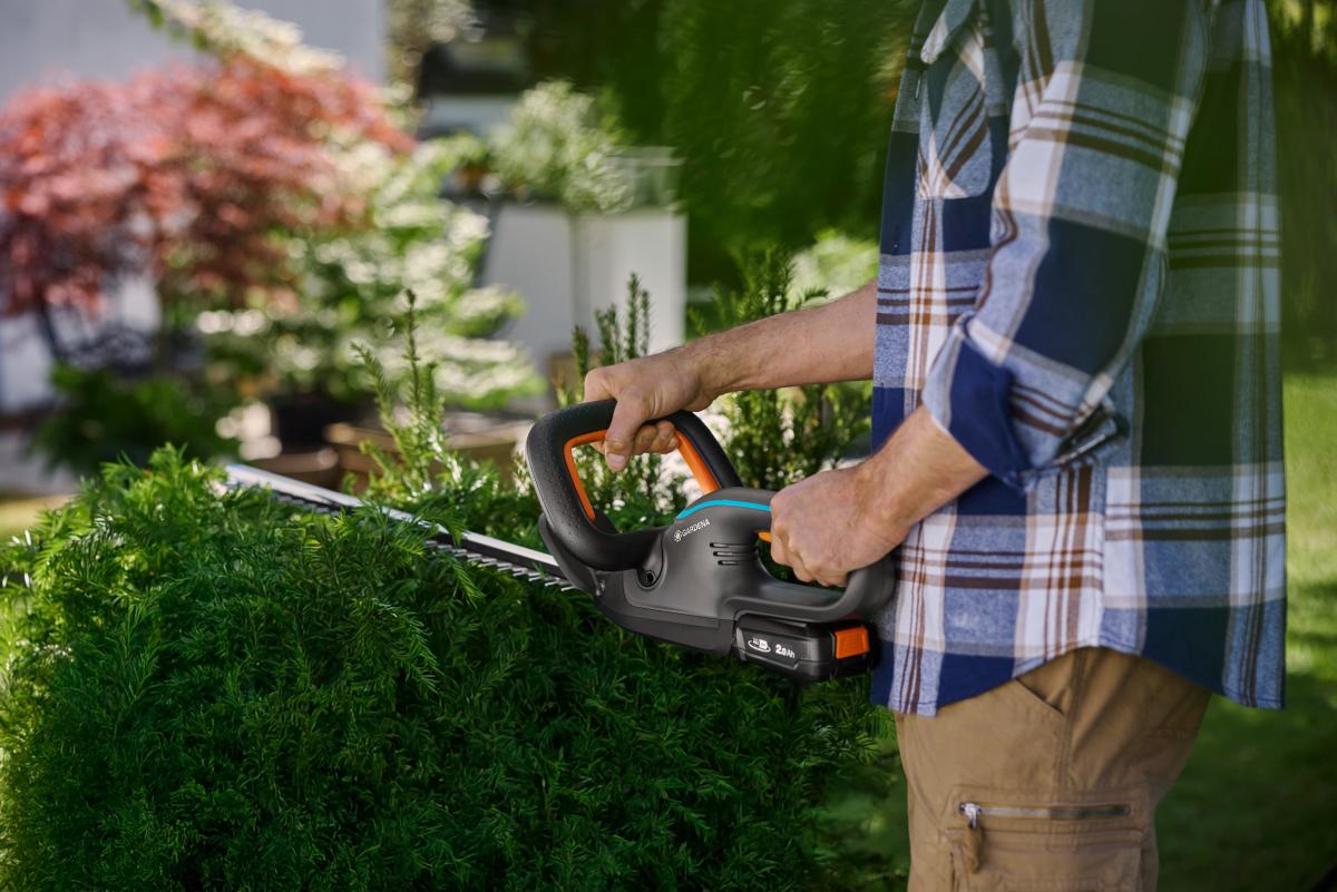 A vezeték nélküli vágást, az ergonomikus kialakítást és a kétélű, gyémántcsiszolt késeket kínáló EasyCut 55/18V sövénynyíró gyors és kényelmes kertápolást biztosít.
