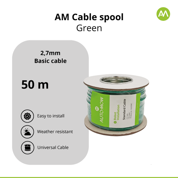Az AM Robots 2,7 mm vastag határoló vezeték egy Basic, alapkábel, mely megegyezik a legtöbb gyártó gyári csomagolásában kapható vezeték átmérőjével és használható MINDEN típusú robotfűnyíró telepítéséhez.